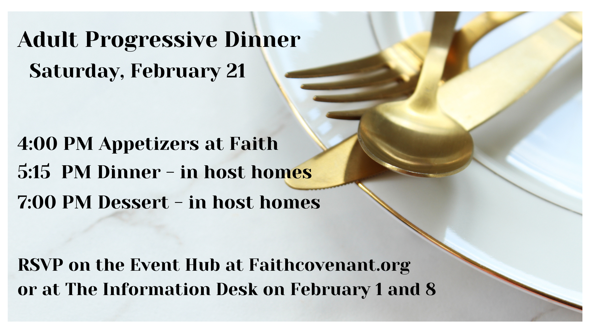 Join other adults from Faith Covenant on Saturday, February 21 as we "progress' through the…