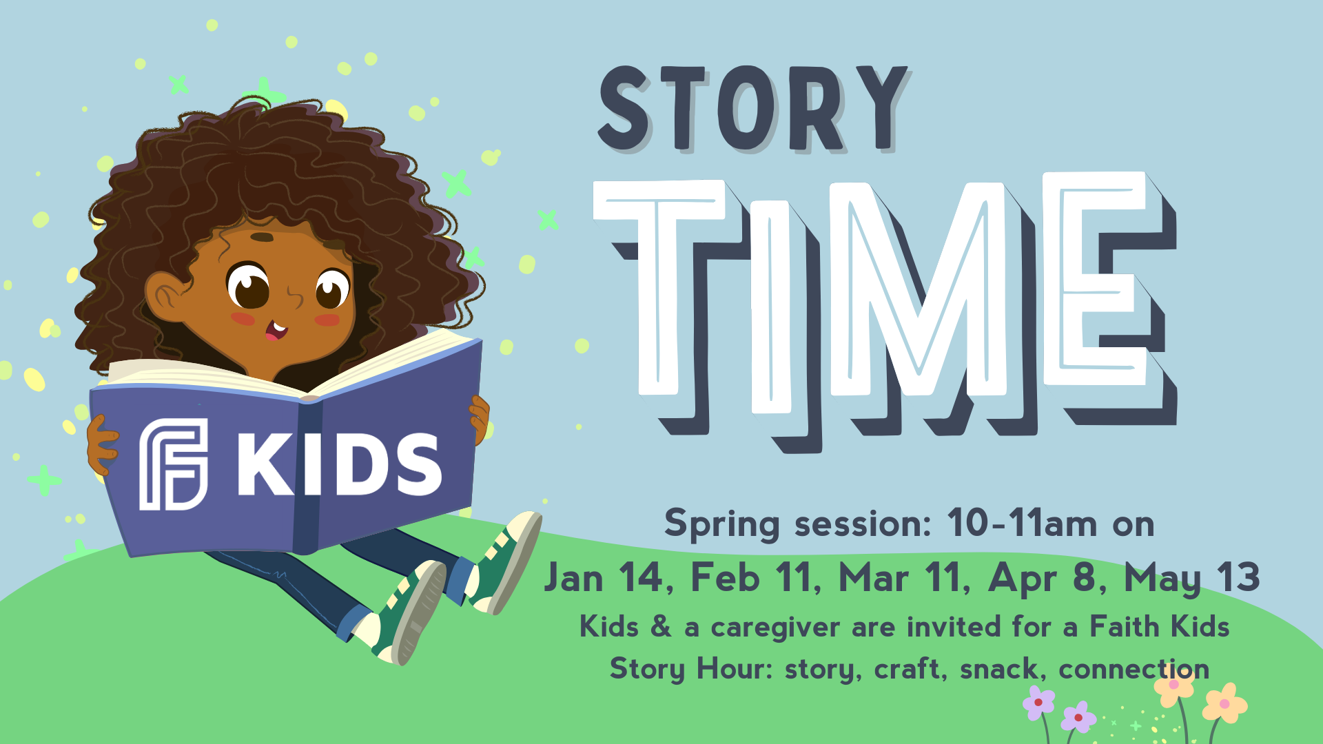 Kids & a caregiver are invited to "Faith Kids Story Hour" from 10-11am in the Faith Kids…
